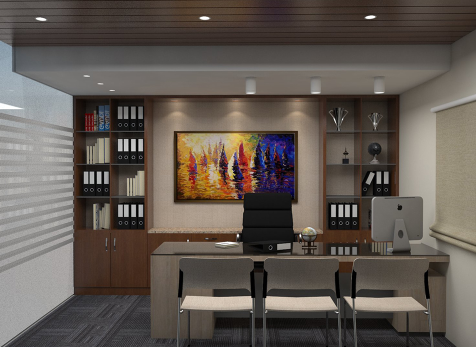 This 5000 sft corporate office was designed to keep up with modern times and project the brand image positively. It has a reception area, visitor’s room, cabins for CEO and director, manager cabins, conference hall, open office along with pantry, server room and washrooms