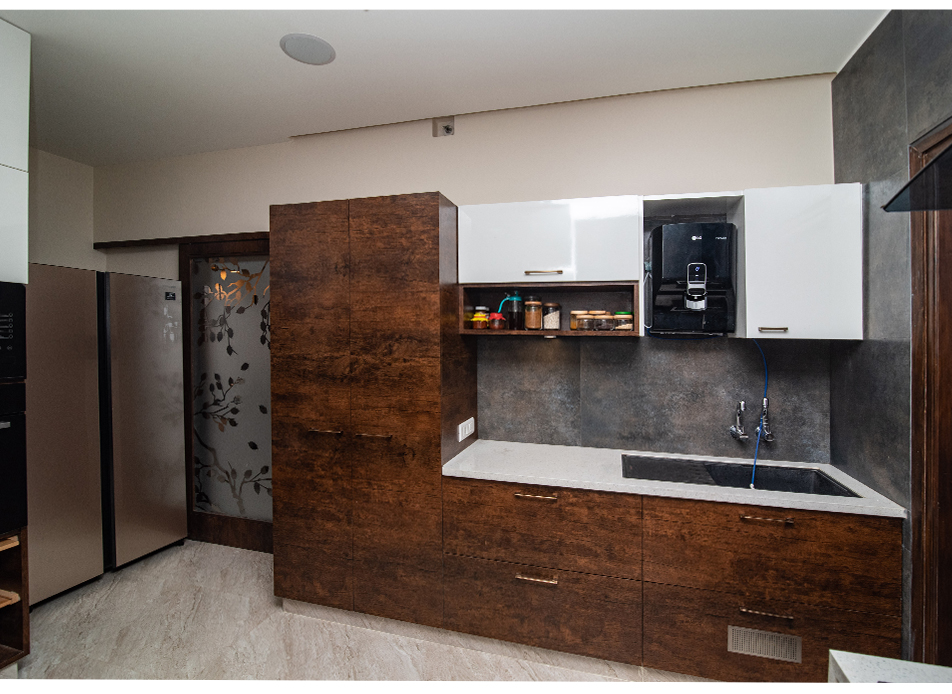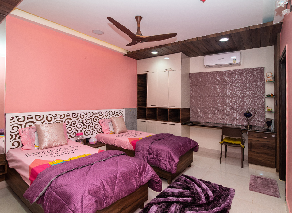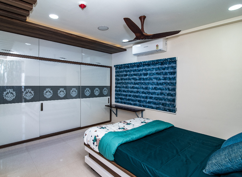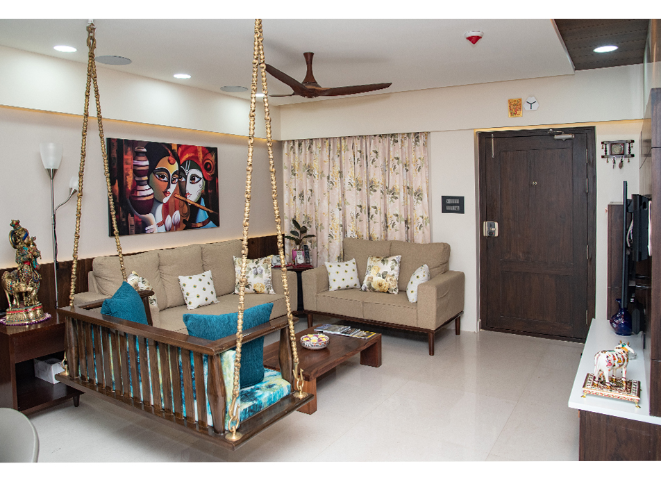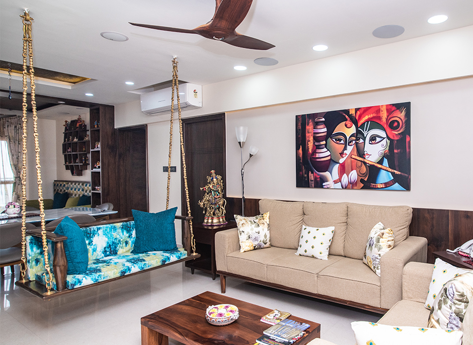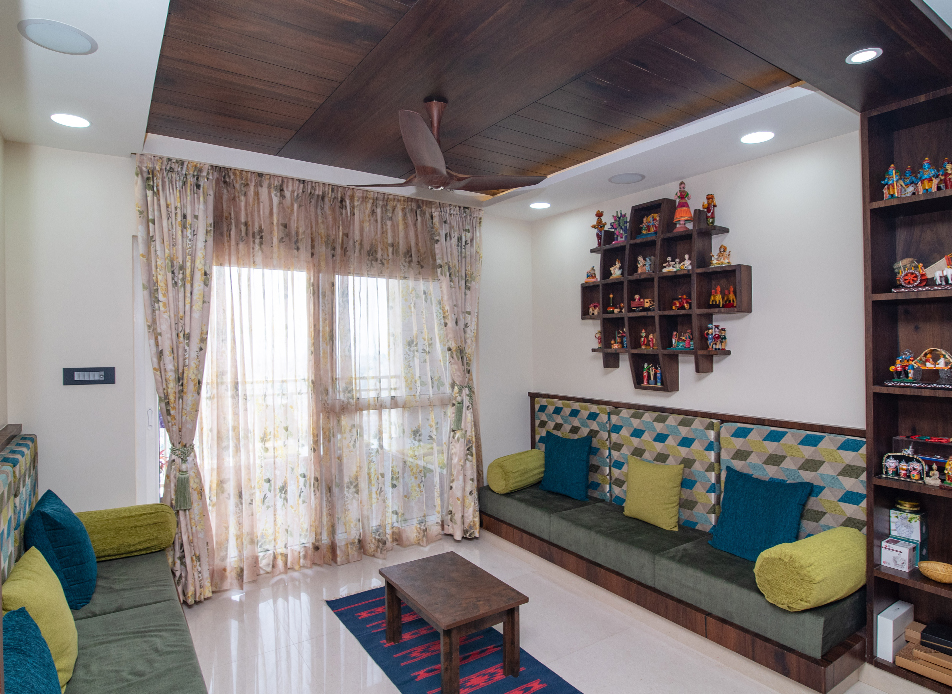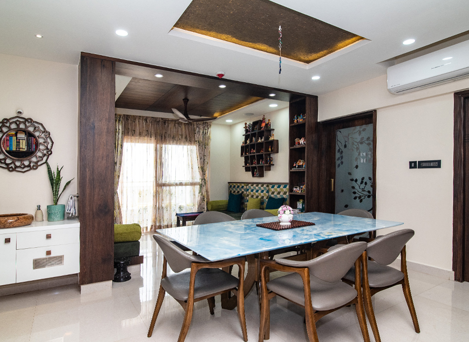The design goal for this apartment was to achieve spacious looking modern interiors yet with some traditional touches. Home for a family of four, the residents wanted a colourful and fresh feel to the house which has been kept in mind while designing this apartment.