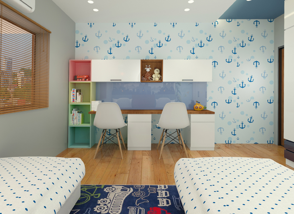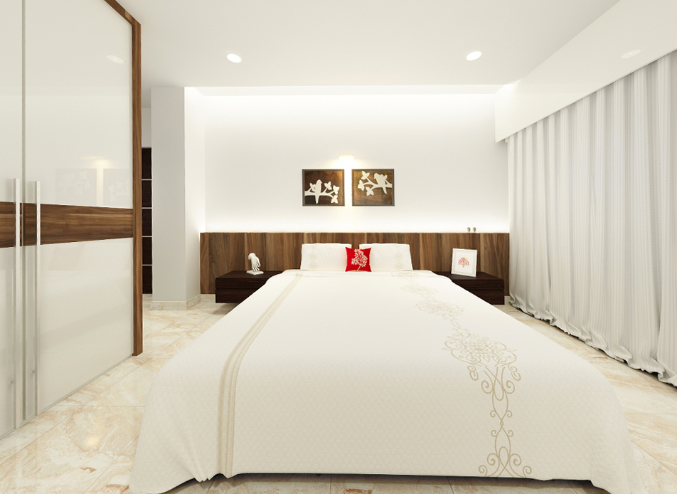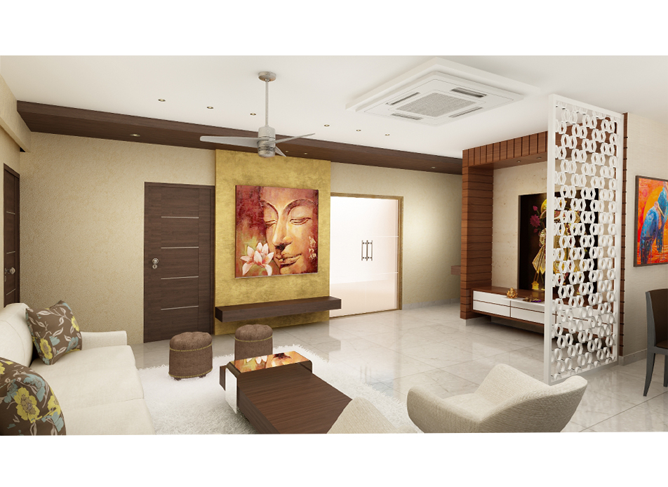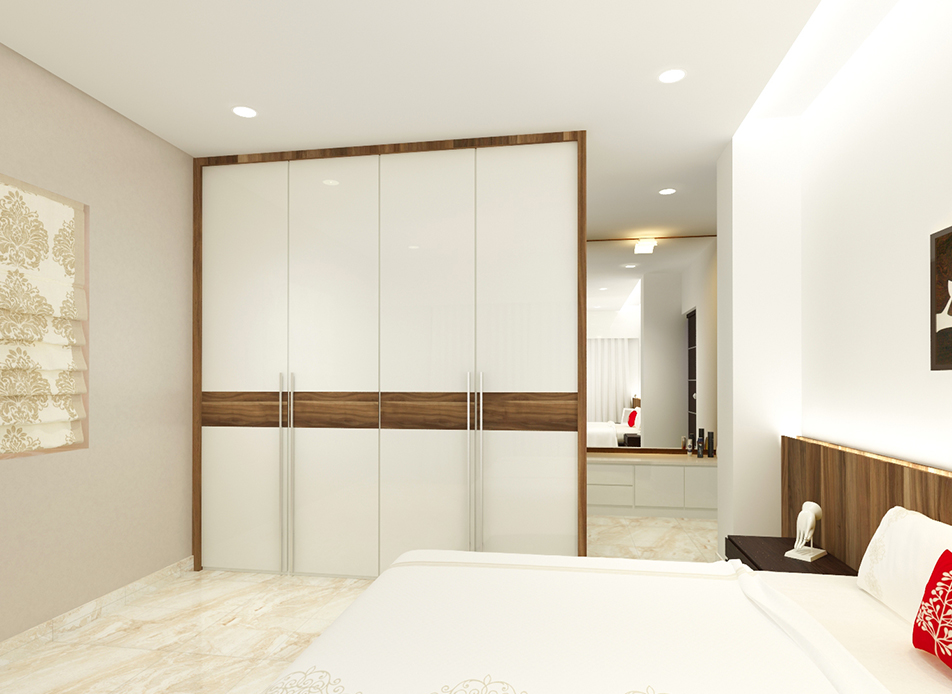 Layout plan has been carefully worked out to maximize the storage space in the apartment which was a primary requirement.